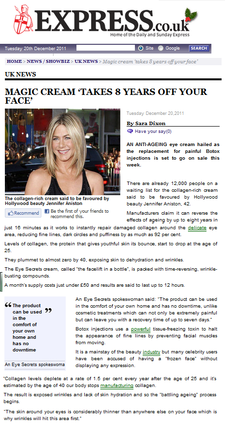 Celebrity makeup artist Lou Page carries the whole range of Eye Secrets products in her make up bag when working on the top celebs, she quotes: